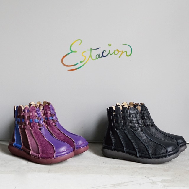 Estacion エスタシオン 編み込みレザーショートブーツ TG223
