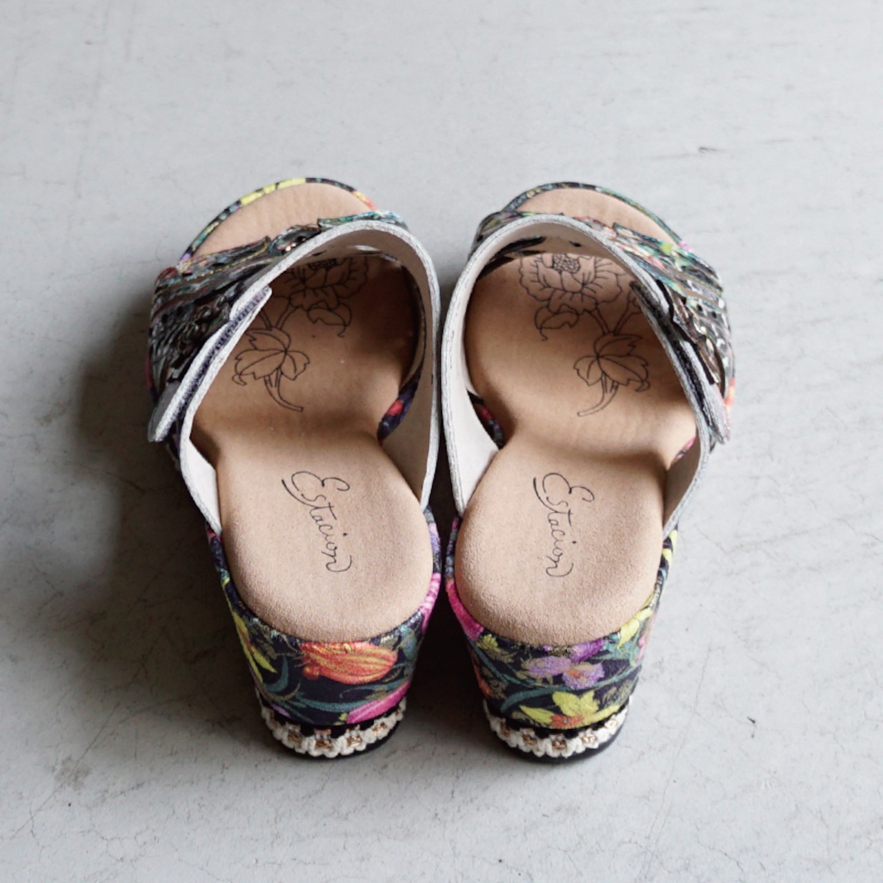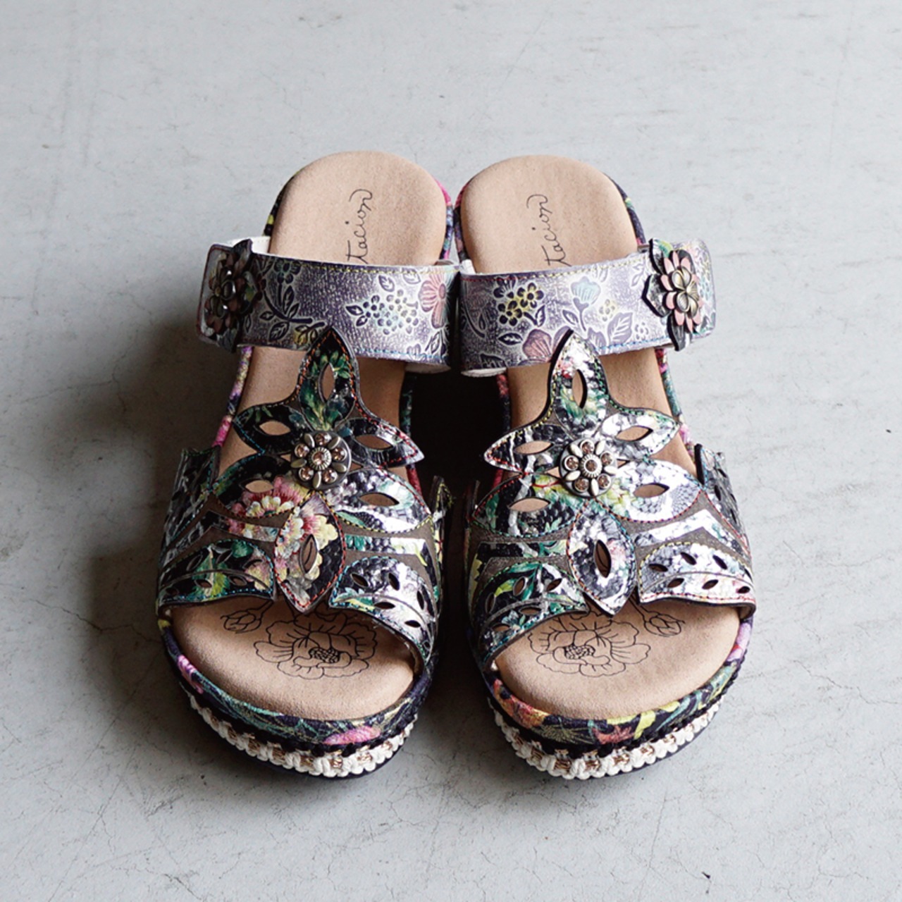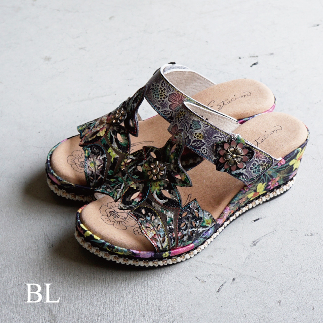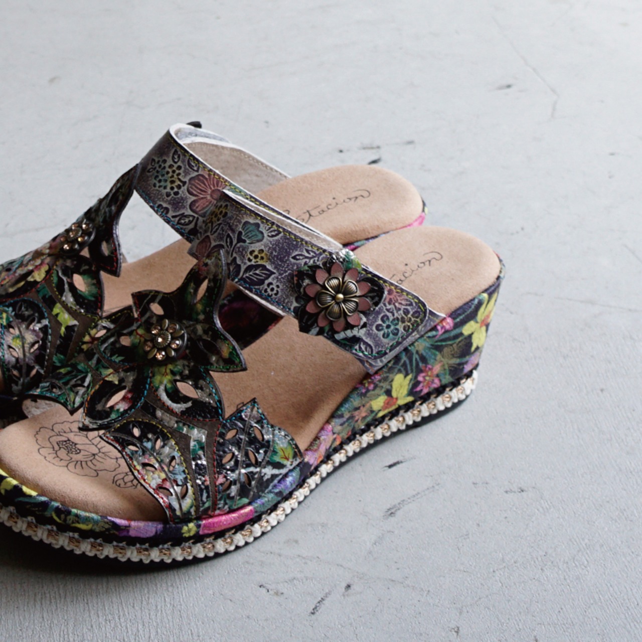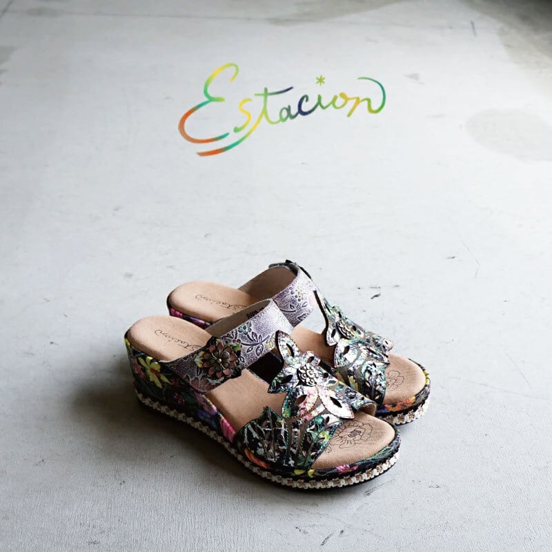 Estacion エスタシオン フラワーモチーフウェッジサンダル 8888-12