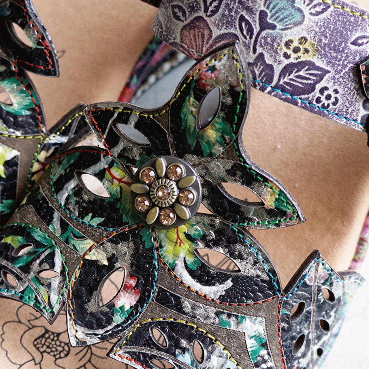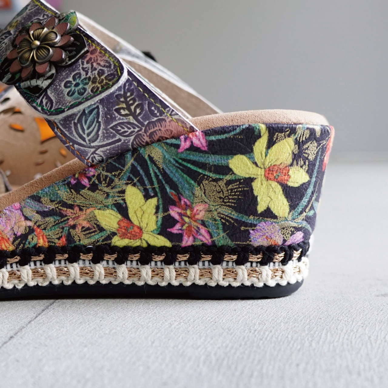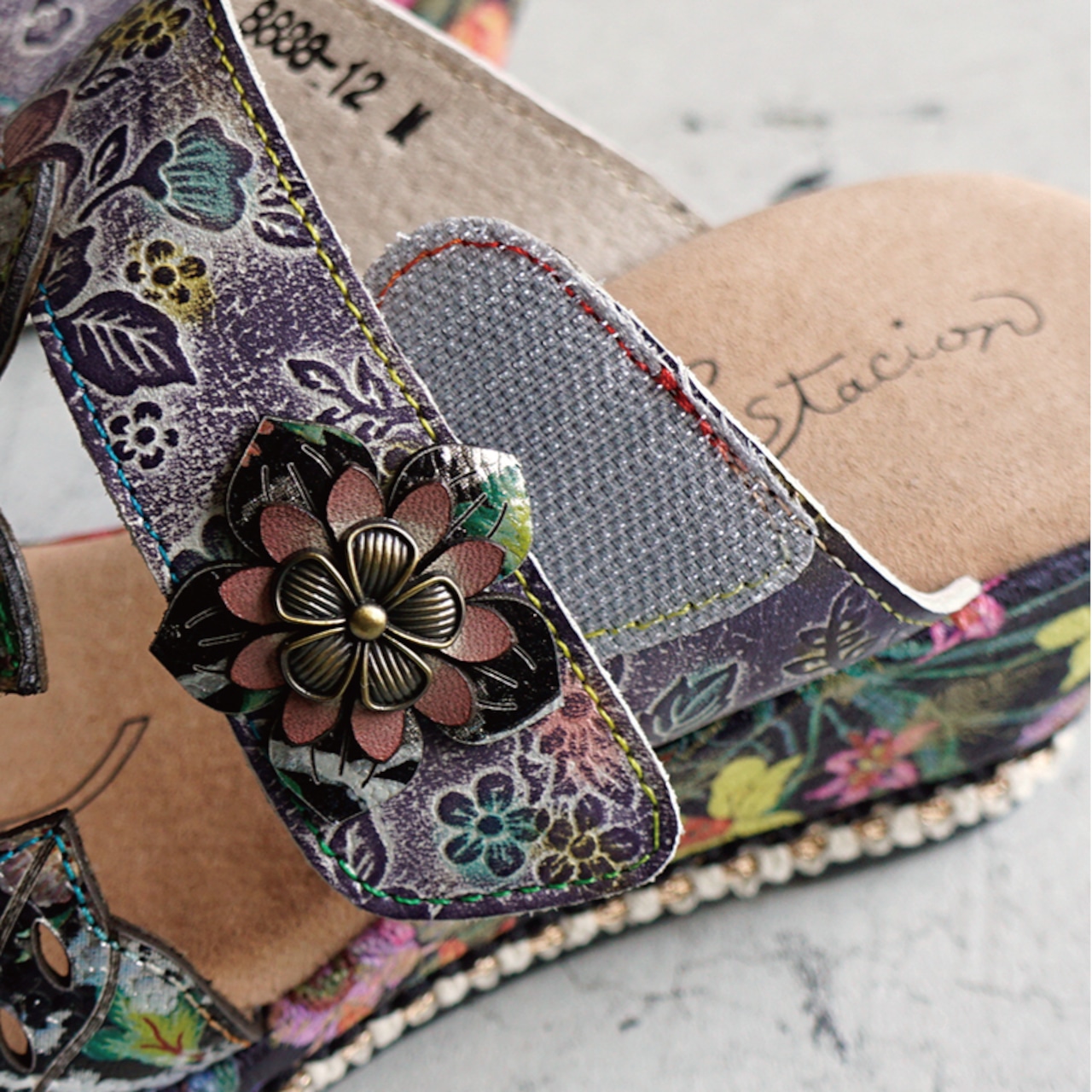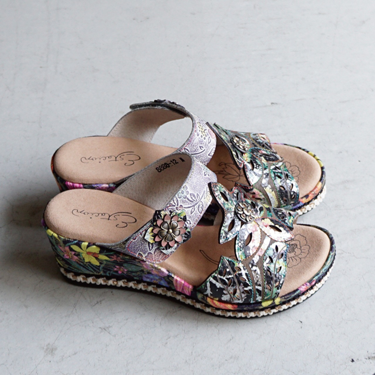Estacion エスタシオン フラワーモチーフウェッジサンダル 8888-12