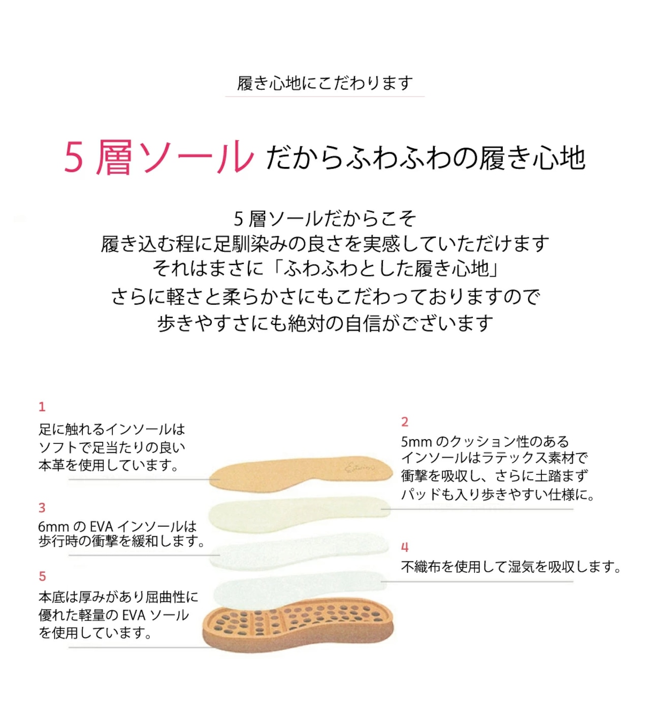 履きごこちへのこだわり5層ソール