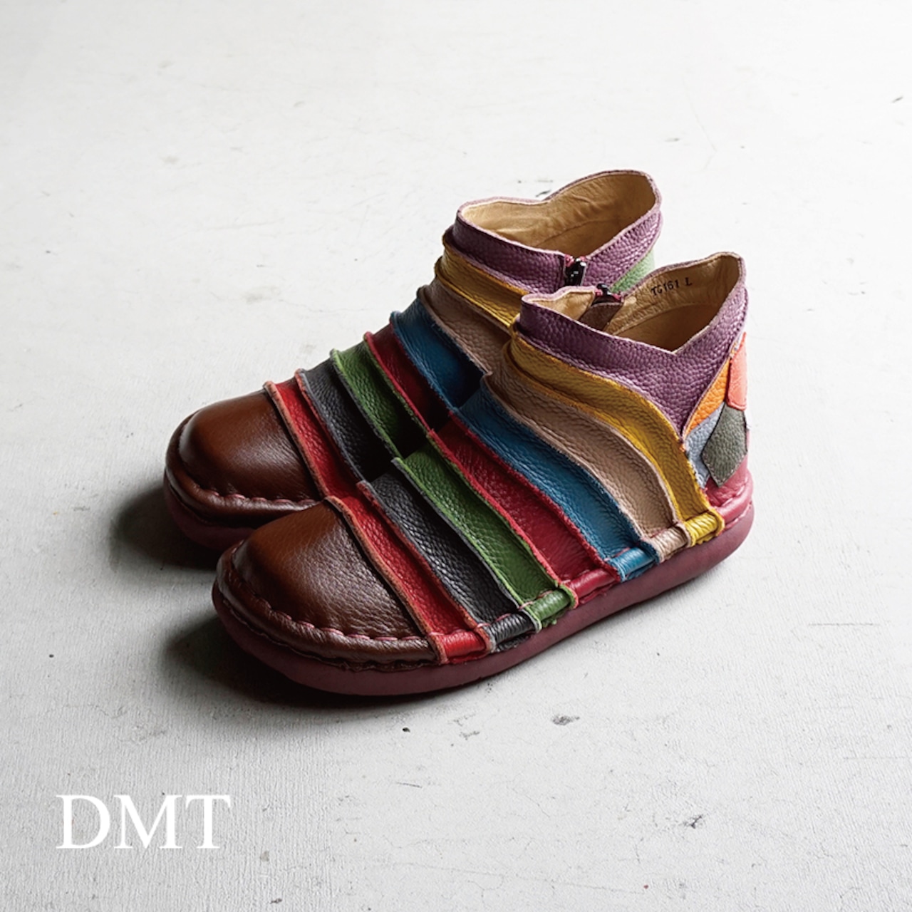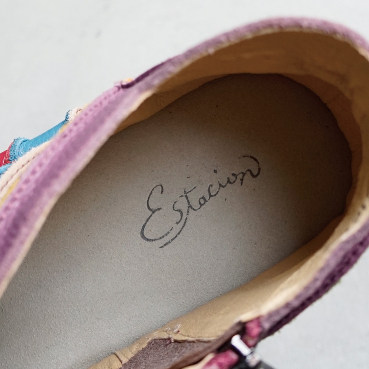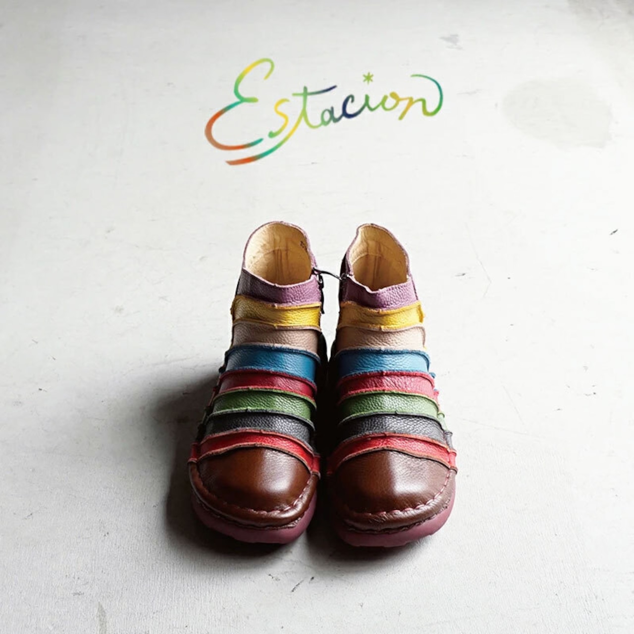 Estacion エスタシオン ボーダーパッチワークレザーショートブーツ TG161