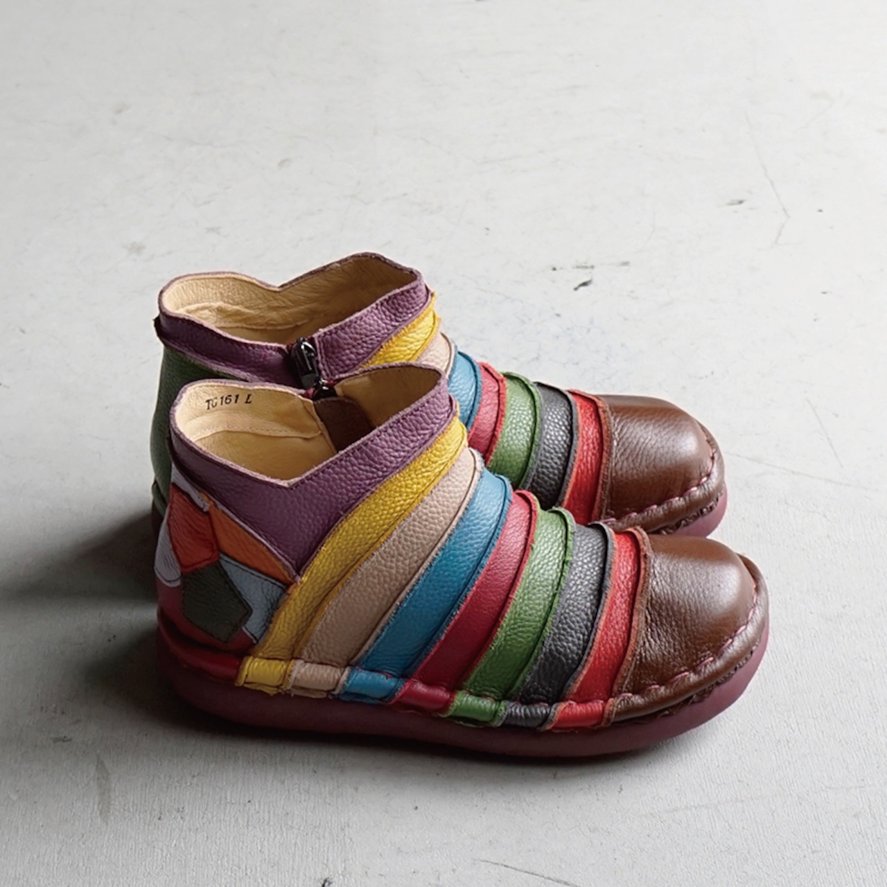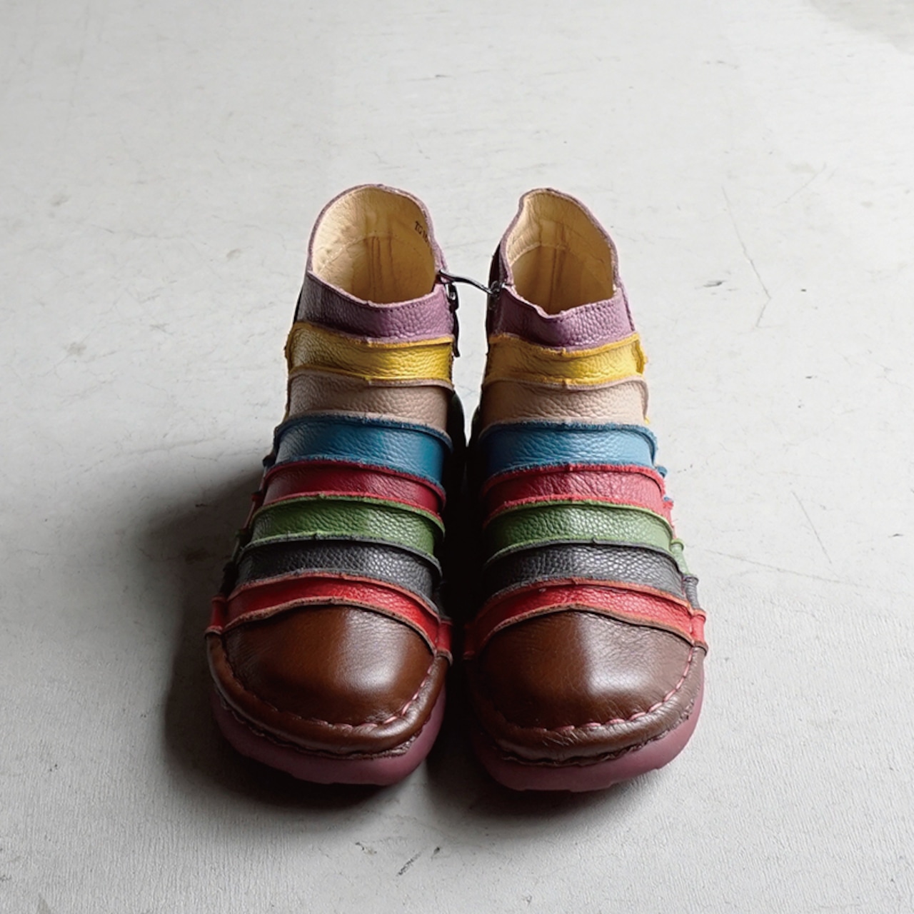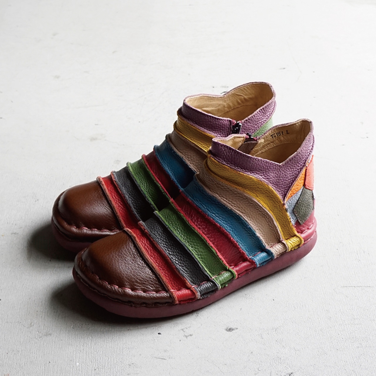 Estacion エスタシオン ボーダーパッチワークレザーショートブーツ TG161