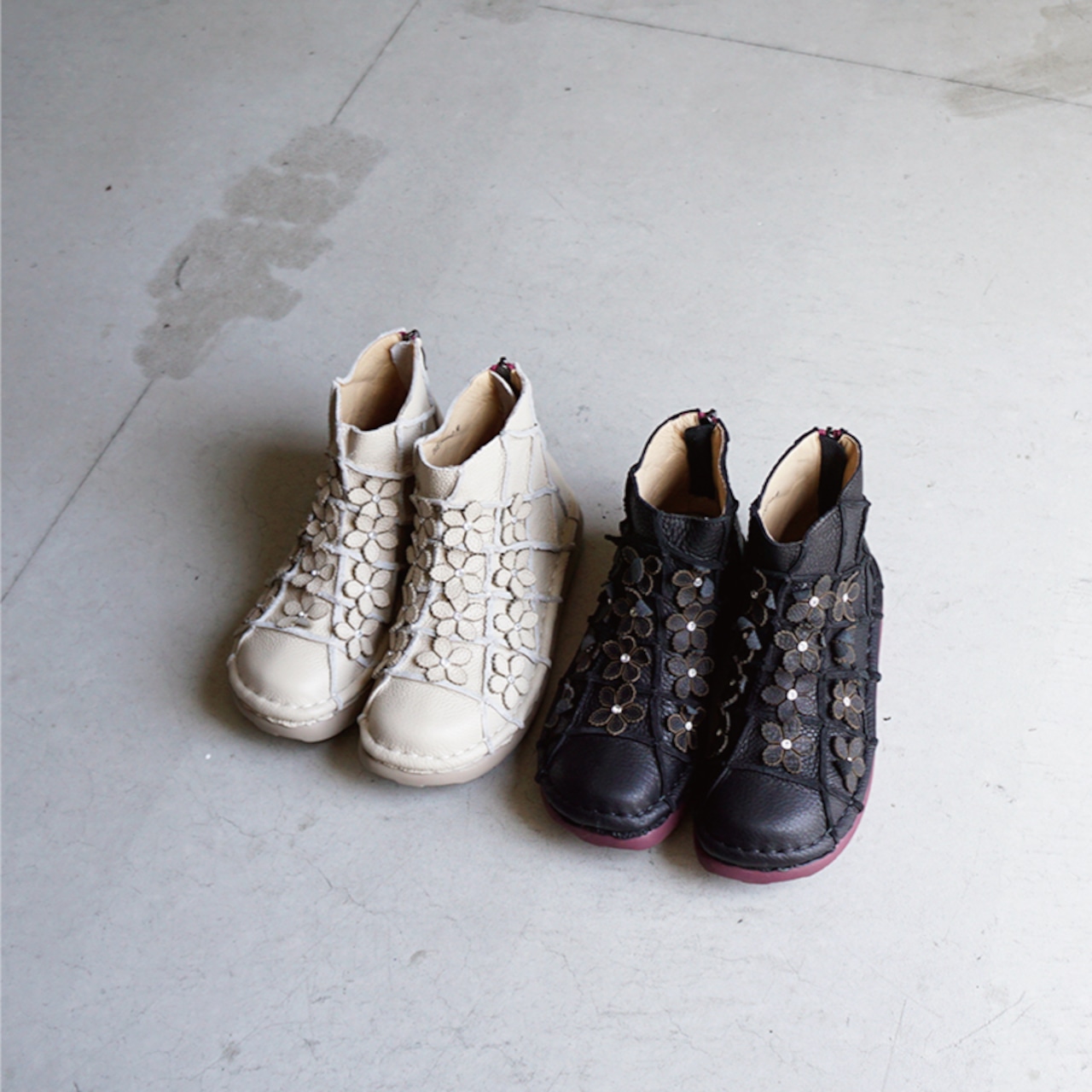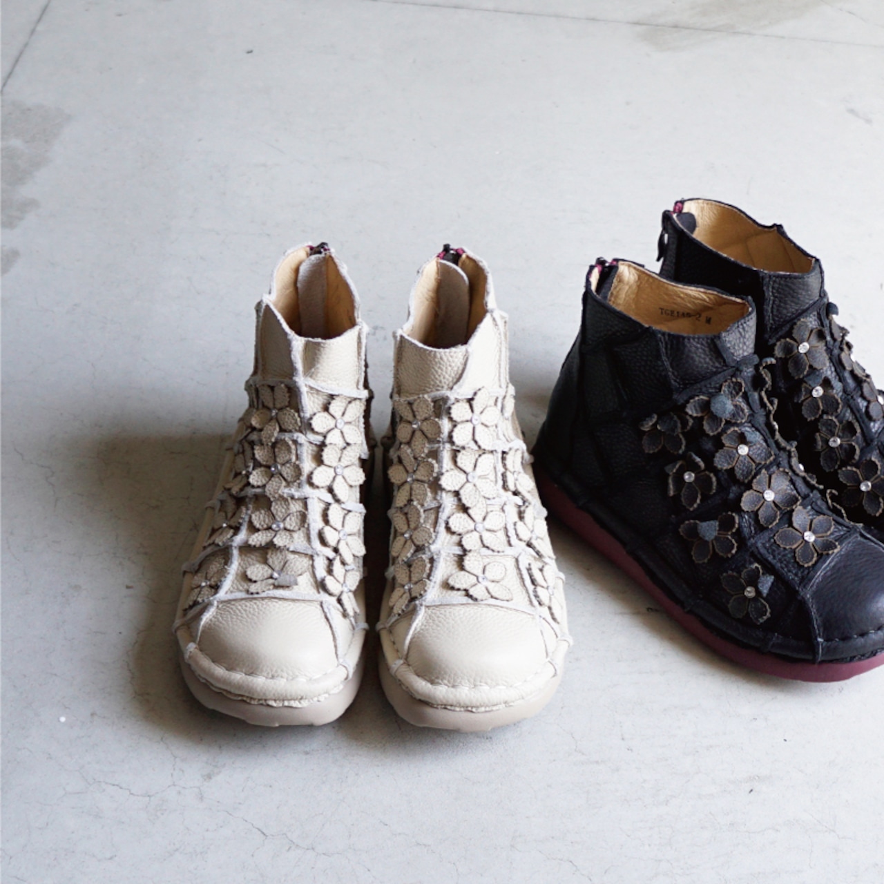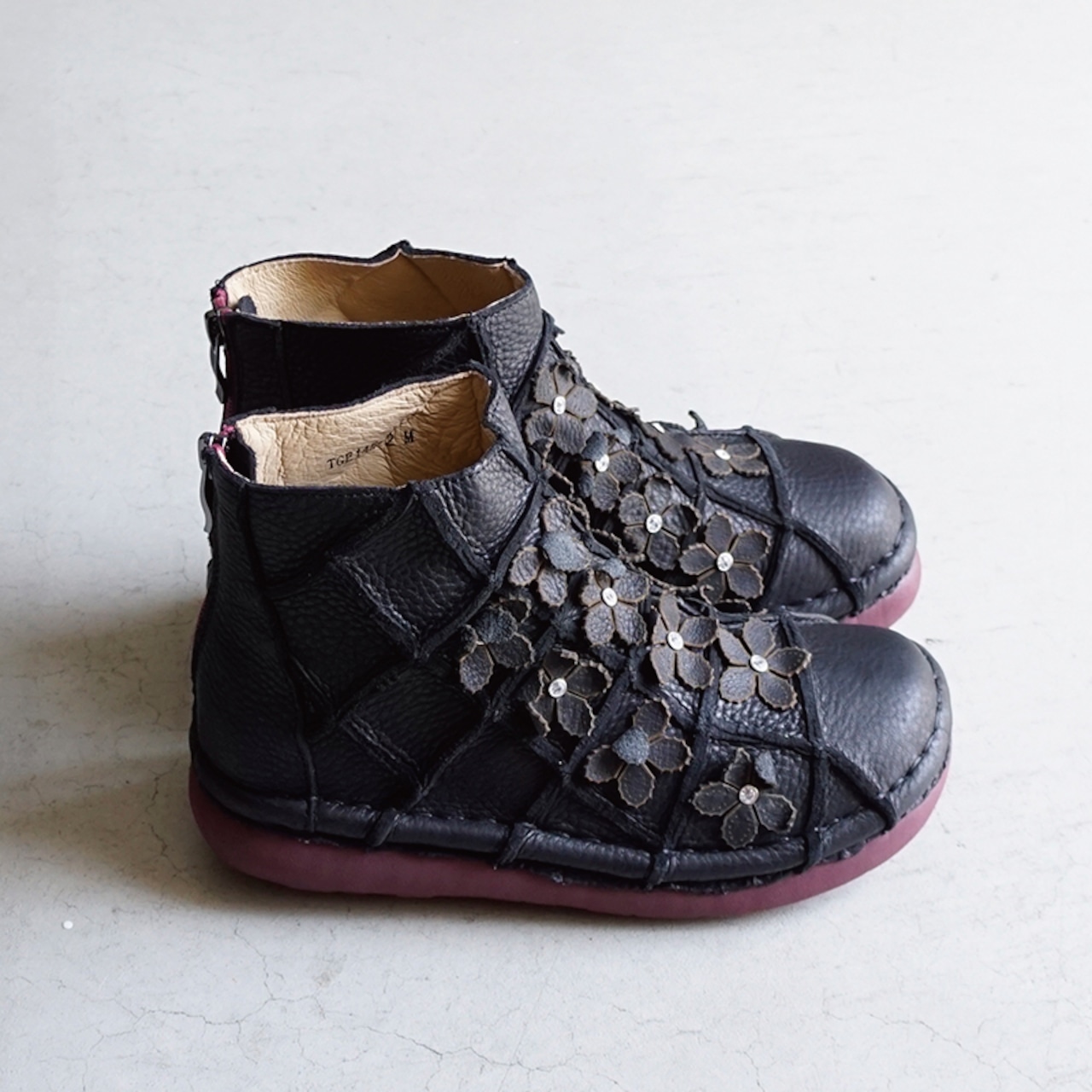 Estacion エスタシオン フラワーレザーショートブーツ TGE145-2