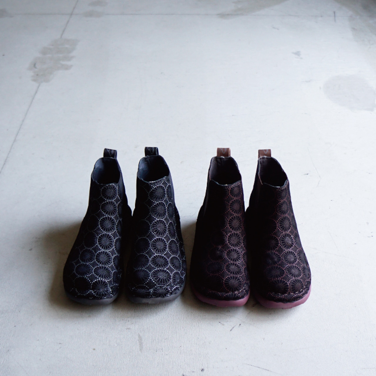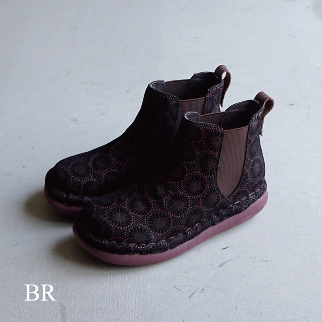 Estacion エスタシオン 和柄モチーフサイドゴアレザーショートブーツ TGE554