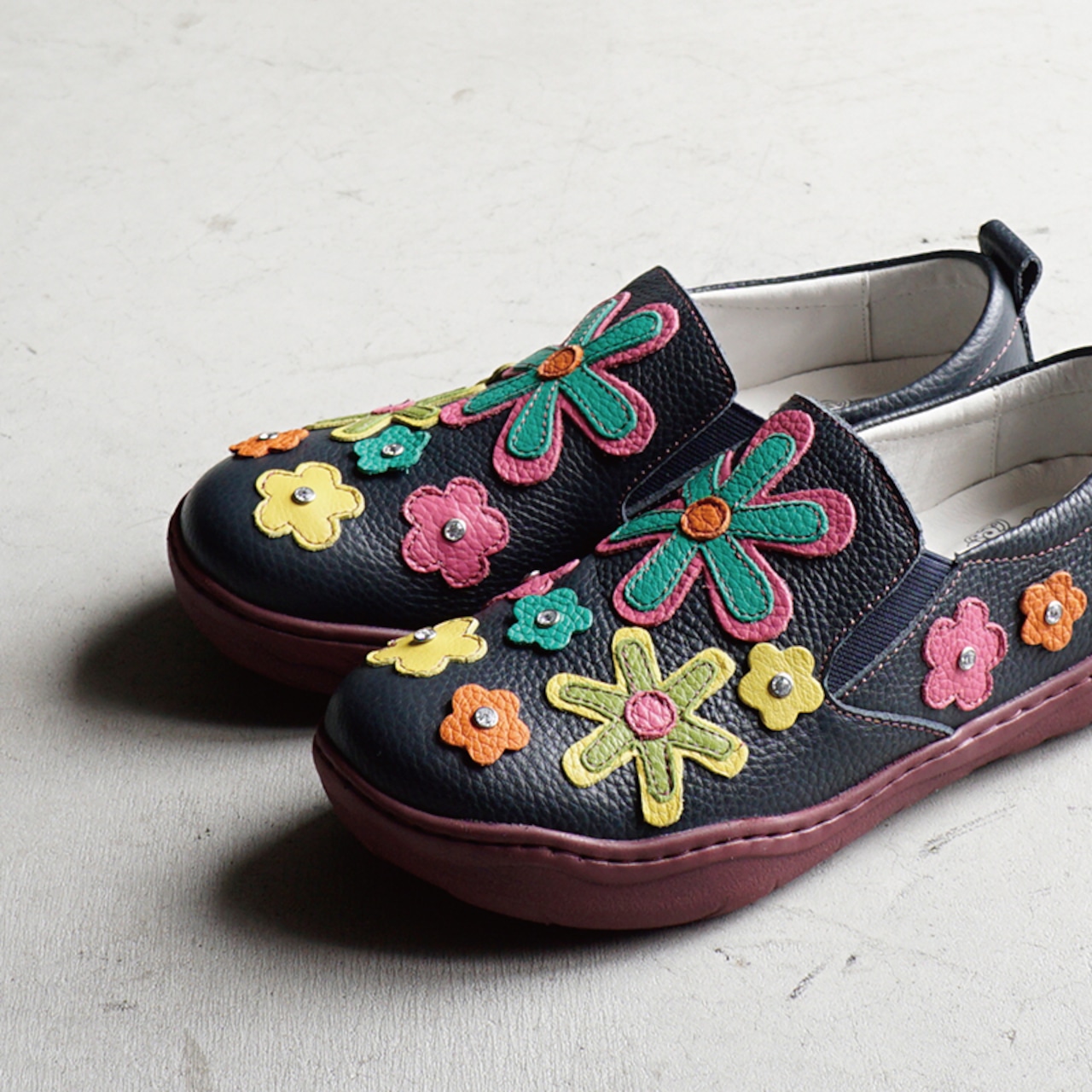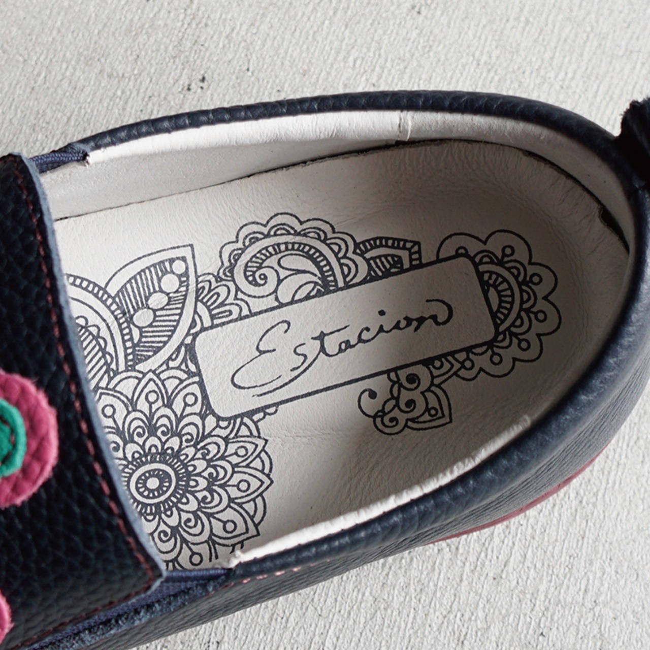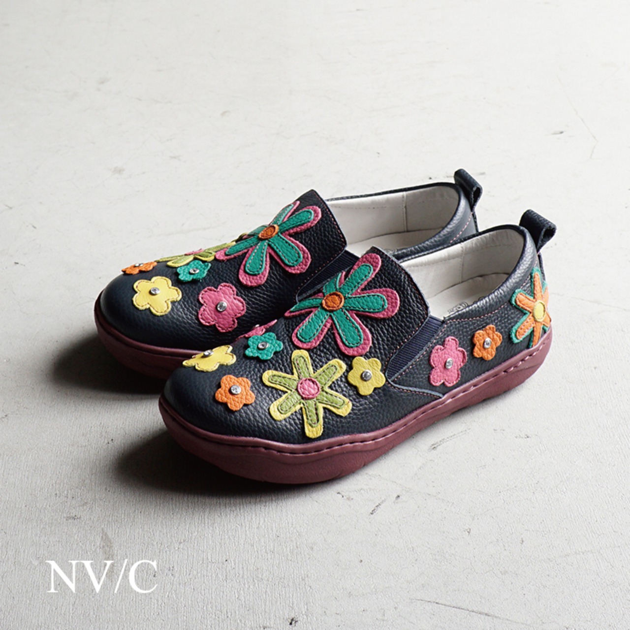 Estacion エスタシオン フラワーモチーフレザースリッポン MLH2118
