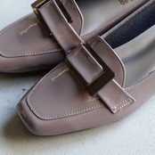 大人の雰囲気漂うスクエアトゥのローヒールパンプス。