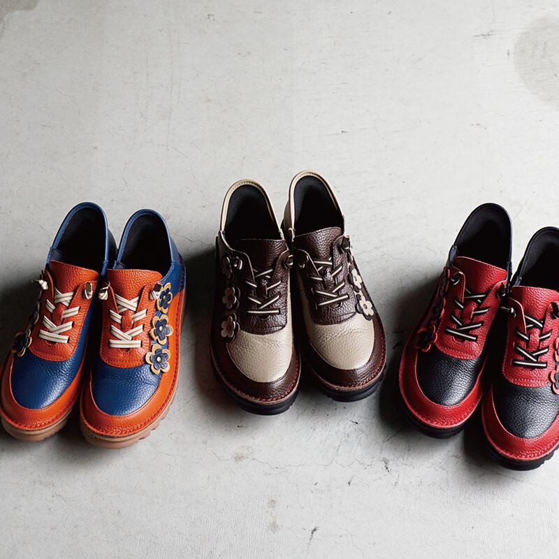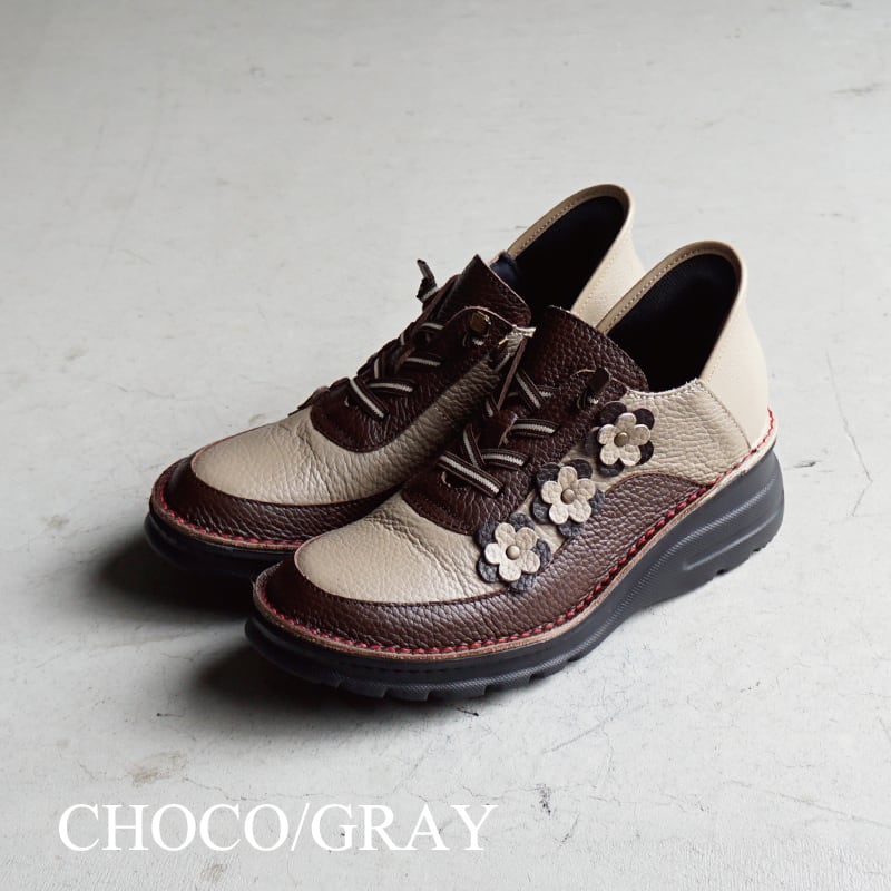 Estacion エスタシオン フラワーモチーフレザースニーカー ES6003