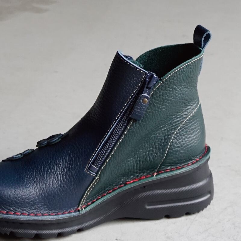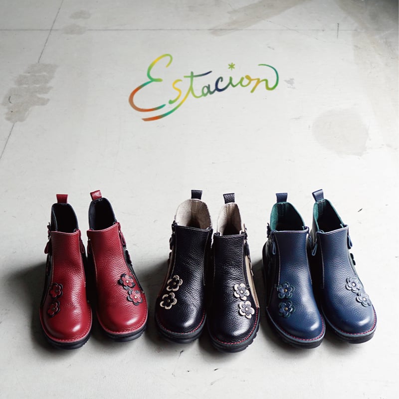 Estacion エスタシオン フラワーモチーフレザージップショートブーツ ES7032
