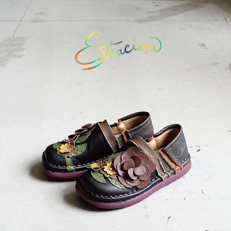 Estacion エスタシオン フラワーモチーフレザースリッポン TGXE650C