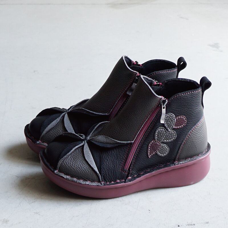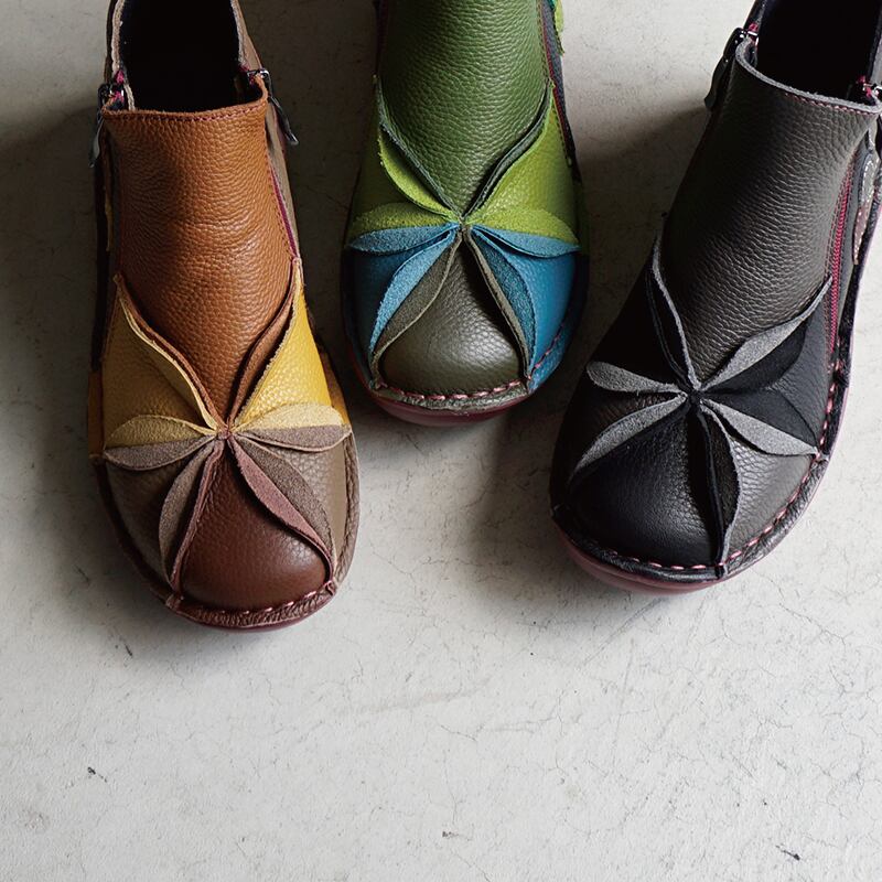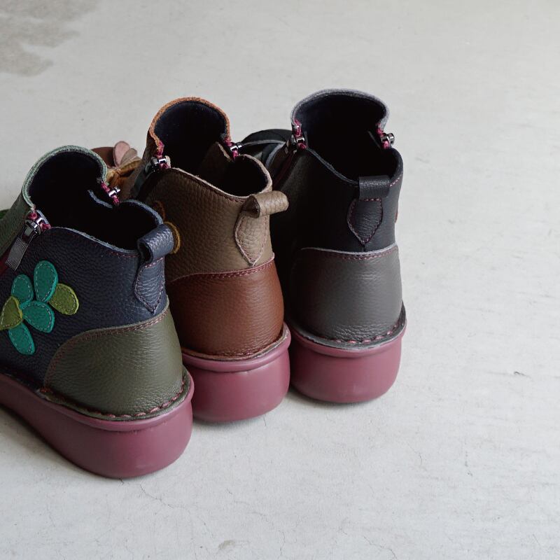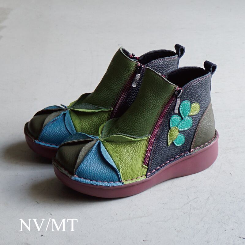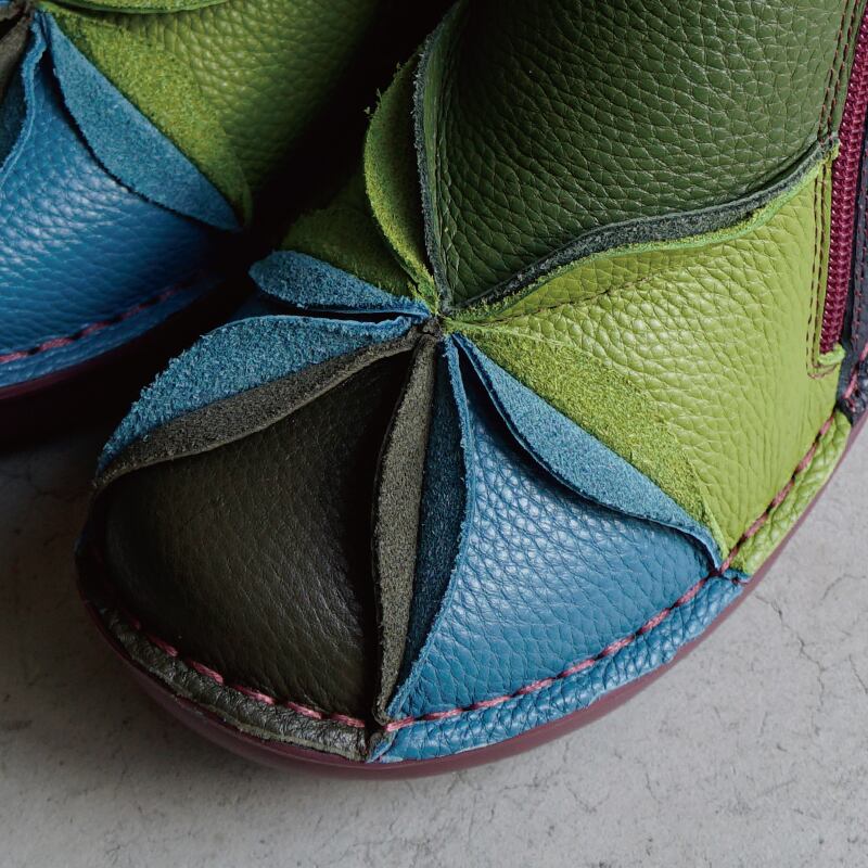 Estacion エスタシオン レザーパッチワークジップショートブーツ TF1821C