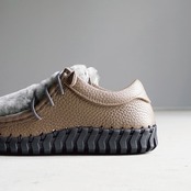 職人さんの手で一針一針、5層ソールと本体を手縫いしています。