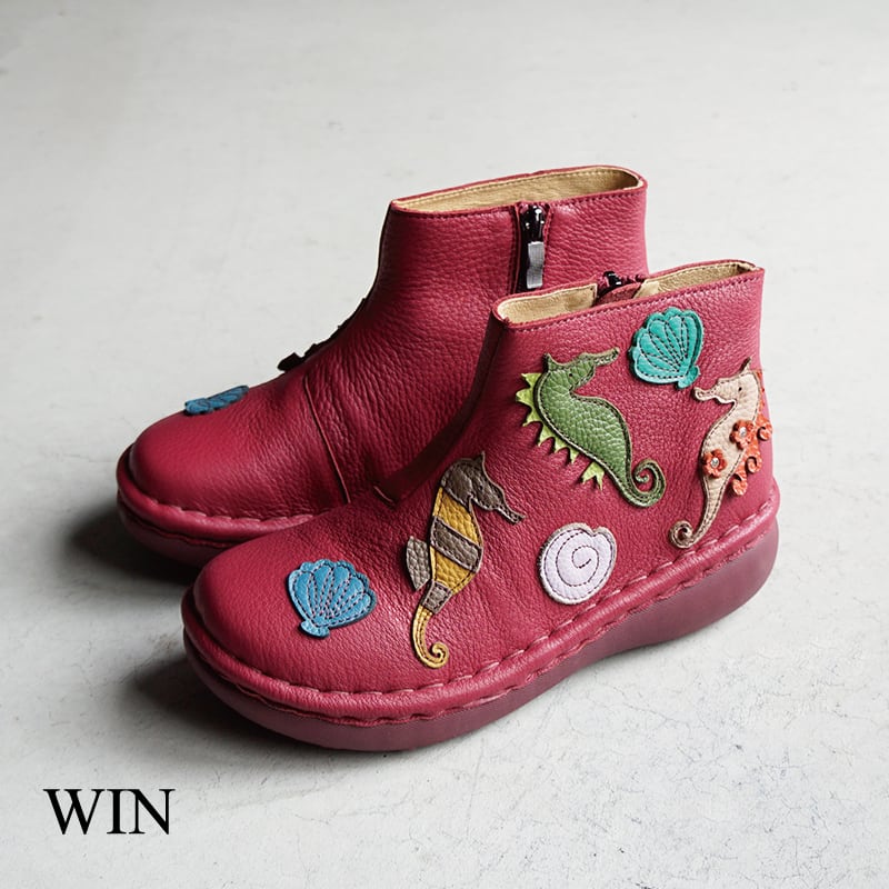 タツノオトシゴモチーフレザーショートブーツ MSE192