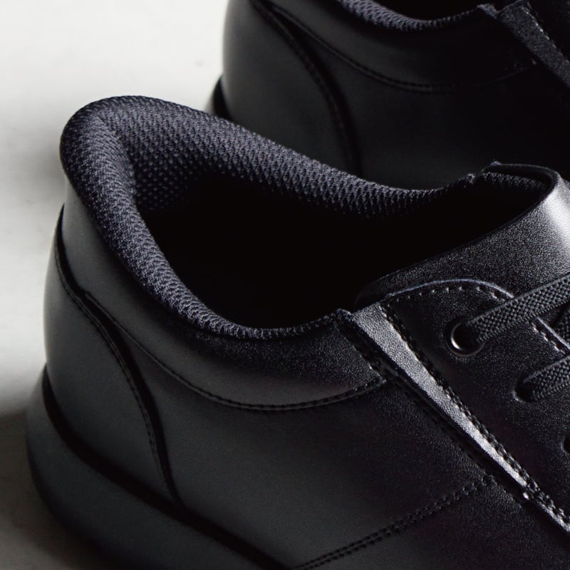 サイドには伸縮性のあるゴムを配し足入れがスムーズな上、靴ベラいらずで立ったまま脱ぎ履きしていただけます。