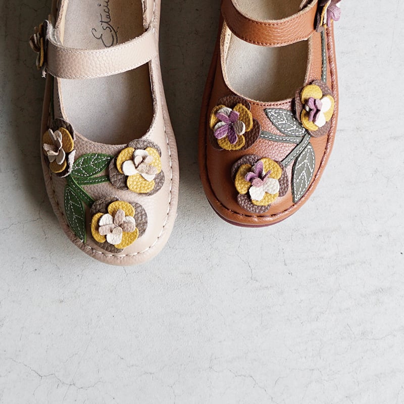 Estacion エスタシオン フラワーレザーストラップシューズ MSE2121