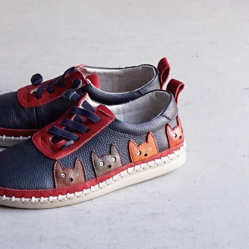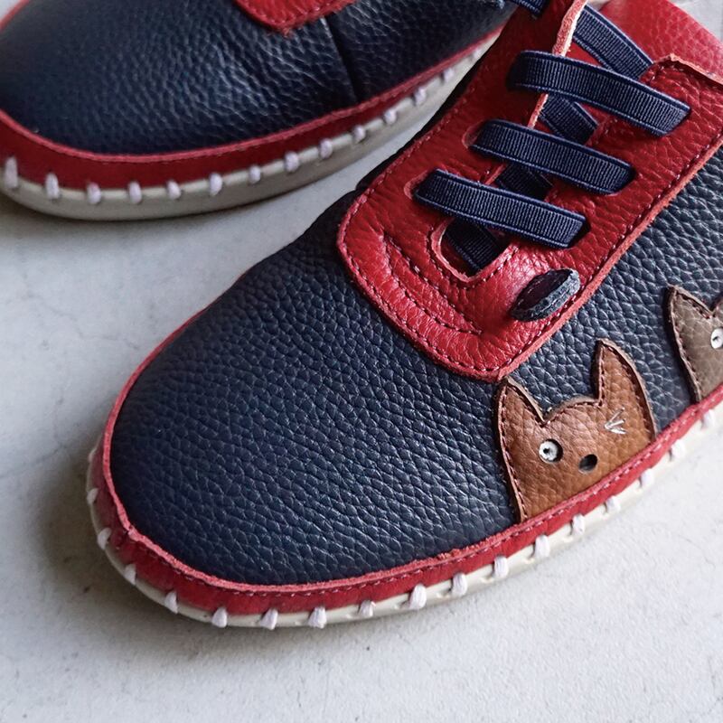 Estacion エスタシオン イヌネコモチーフレザースニーカー MLK225A
