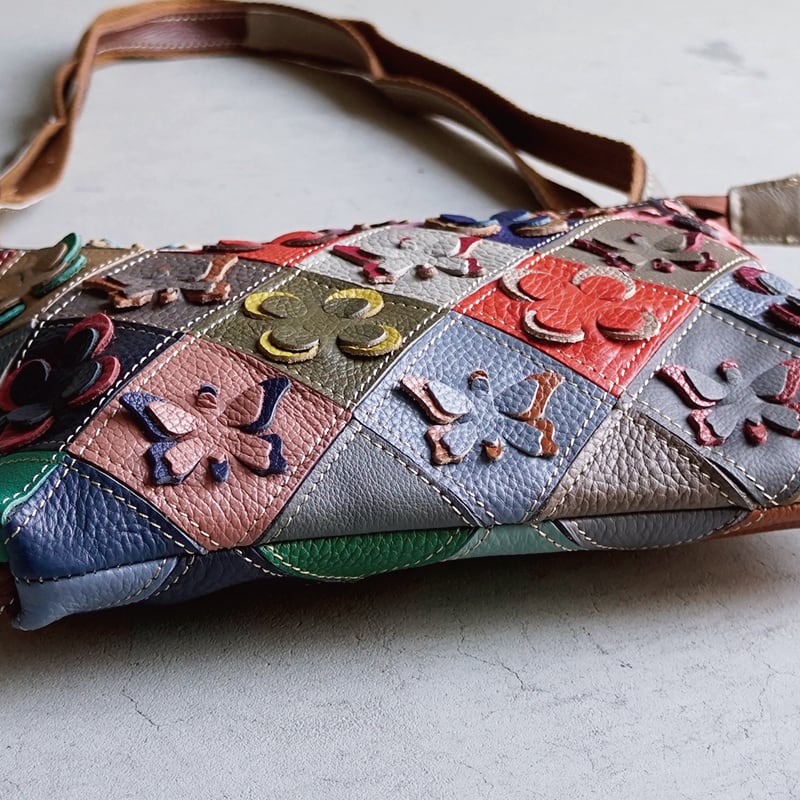 ちょうちょとフラワーモチーフが可愛い、本革バッグ。