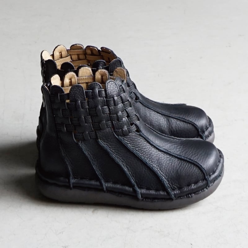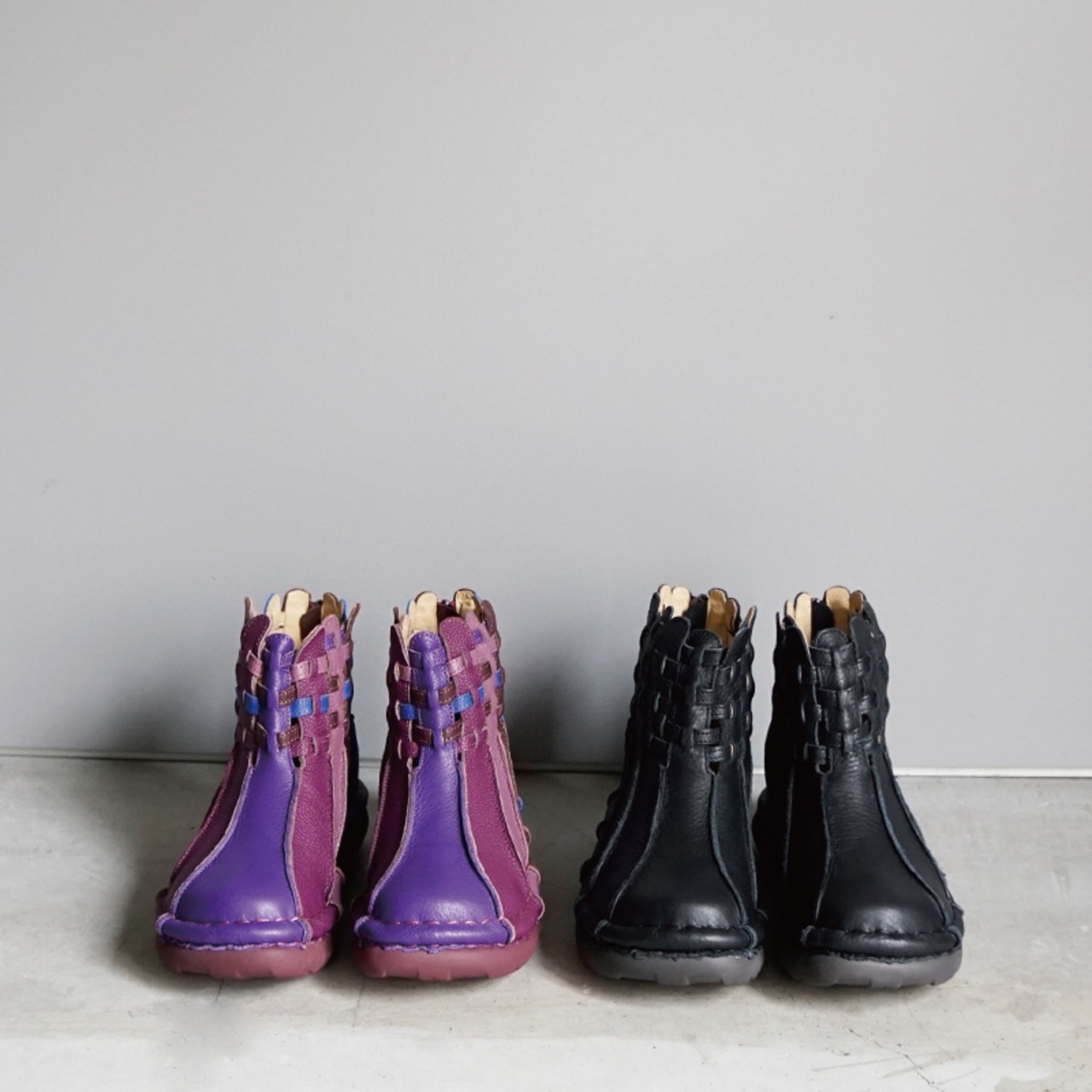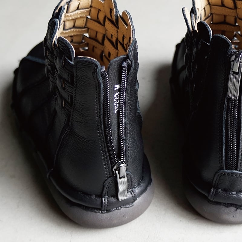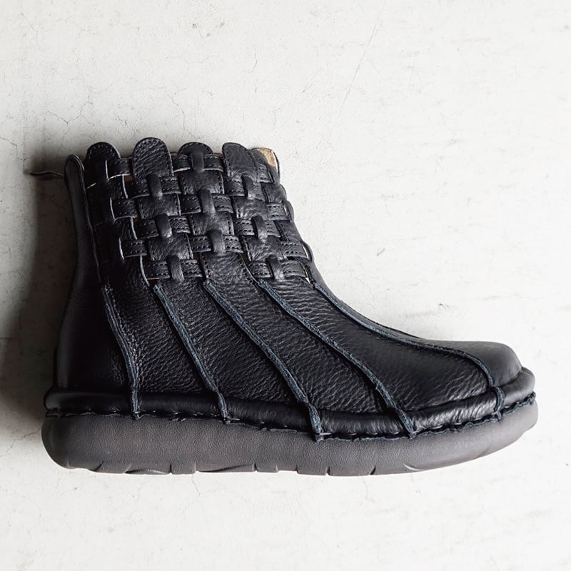 Estacion エスタシオン 編み込みレザーショートブーツ TG223