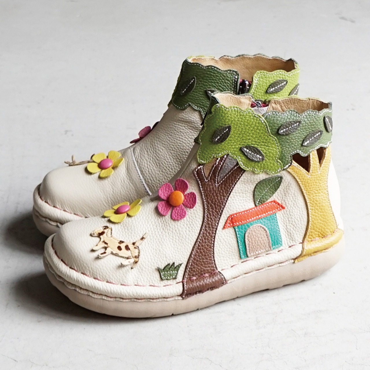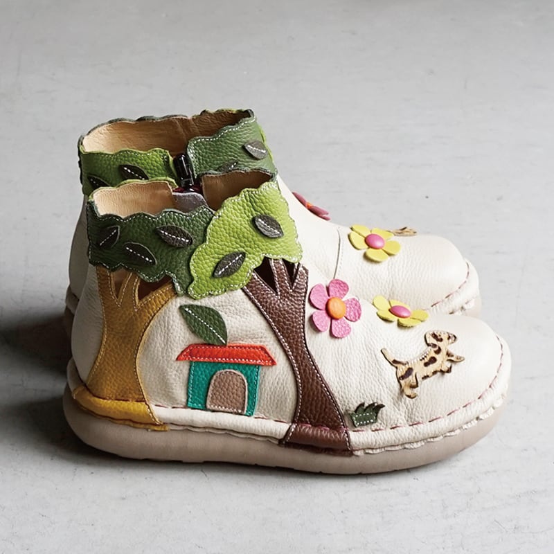 ワンちゃんモチーフ本革ショートブーツ TGE497