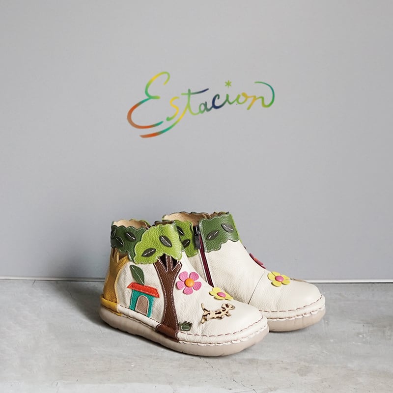 Estacion エスタシオン ワンちゃんモチーフ本革ショートブーツ TGE497