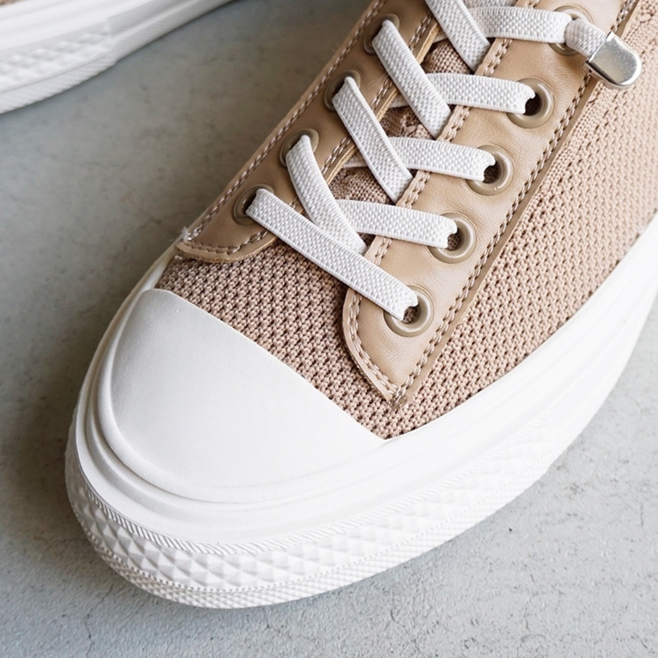 ニット素材を使用し、足幅はやや細めに設計された、程よく足にフィットするスニーカー。