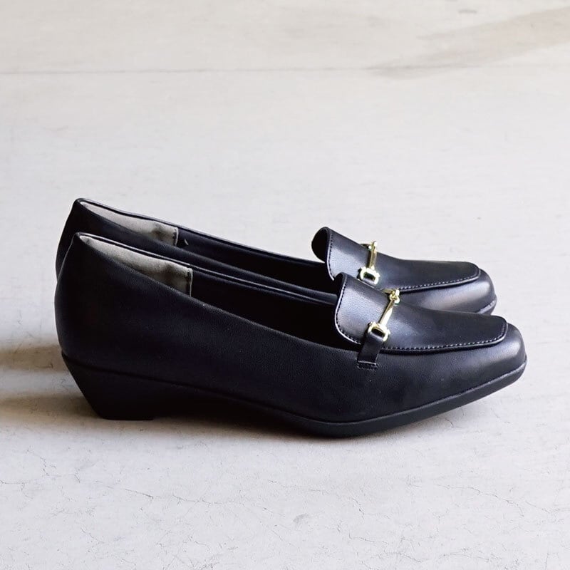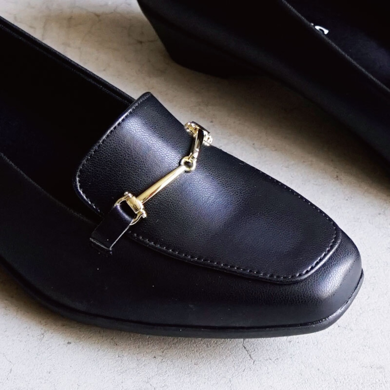 クラシカルなビットデザインが目を引く、上品なローファーパンプス。