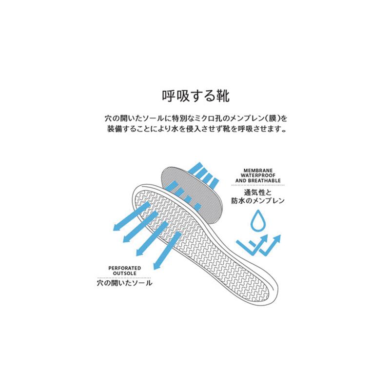特許取得済みの独自技術を靴に取り入れ、通気・防水ソールを兼ね備えた靴はまさに呼吸する靴。
