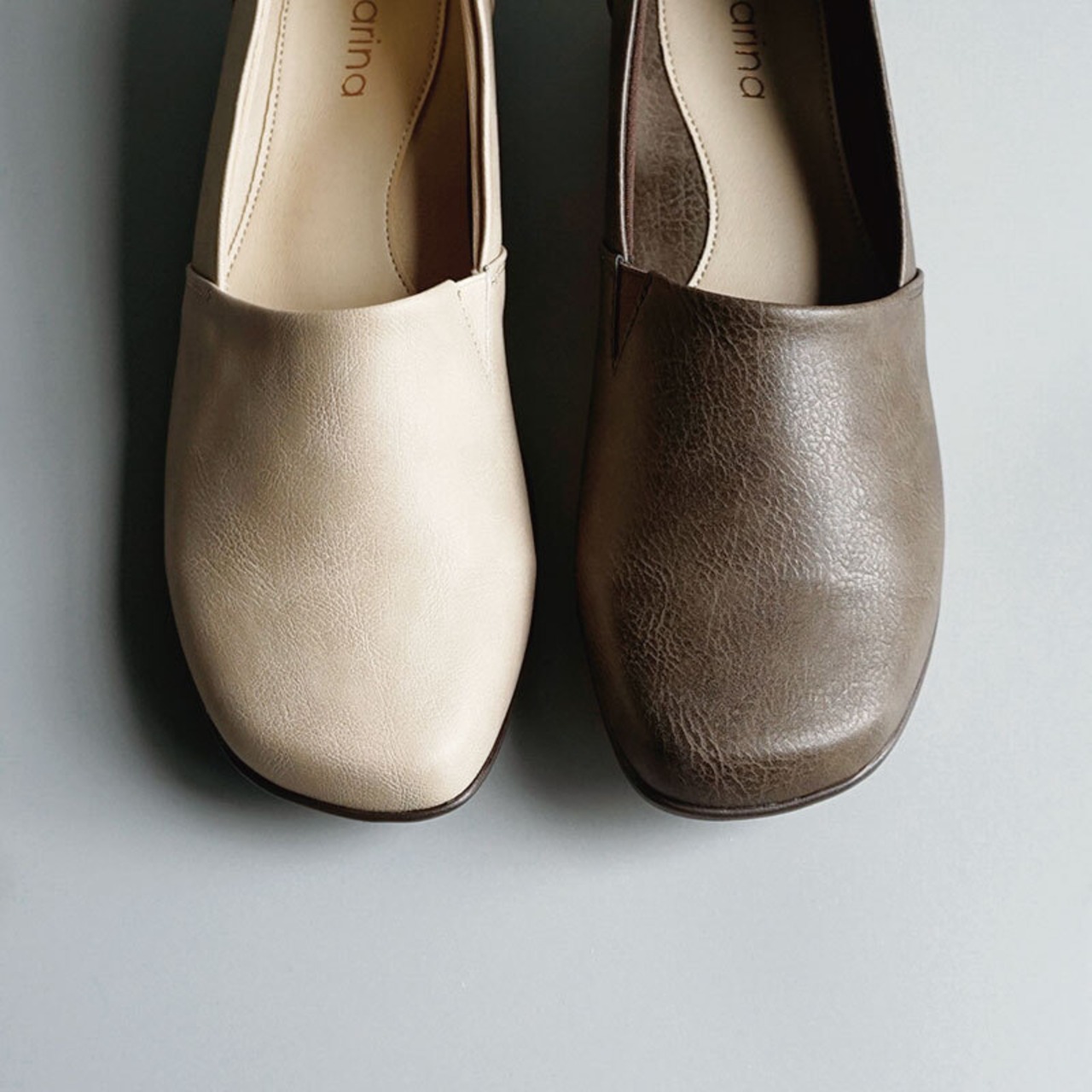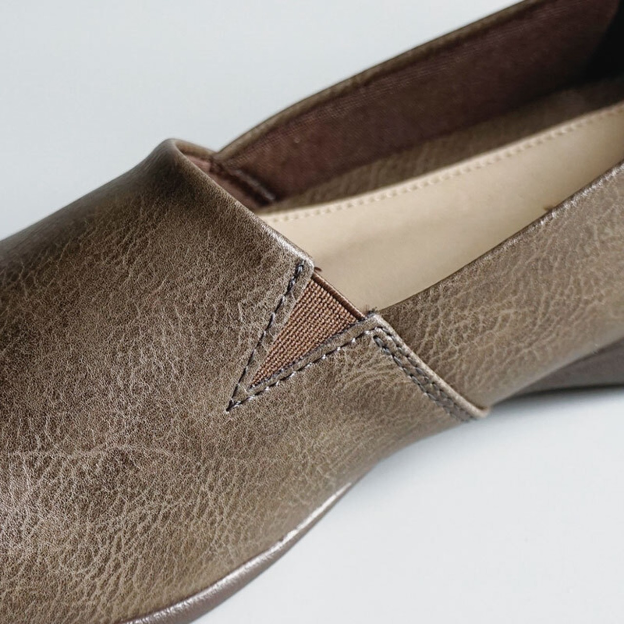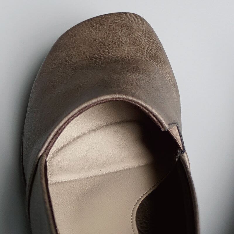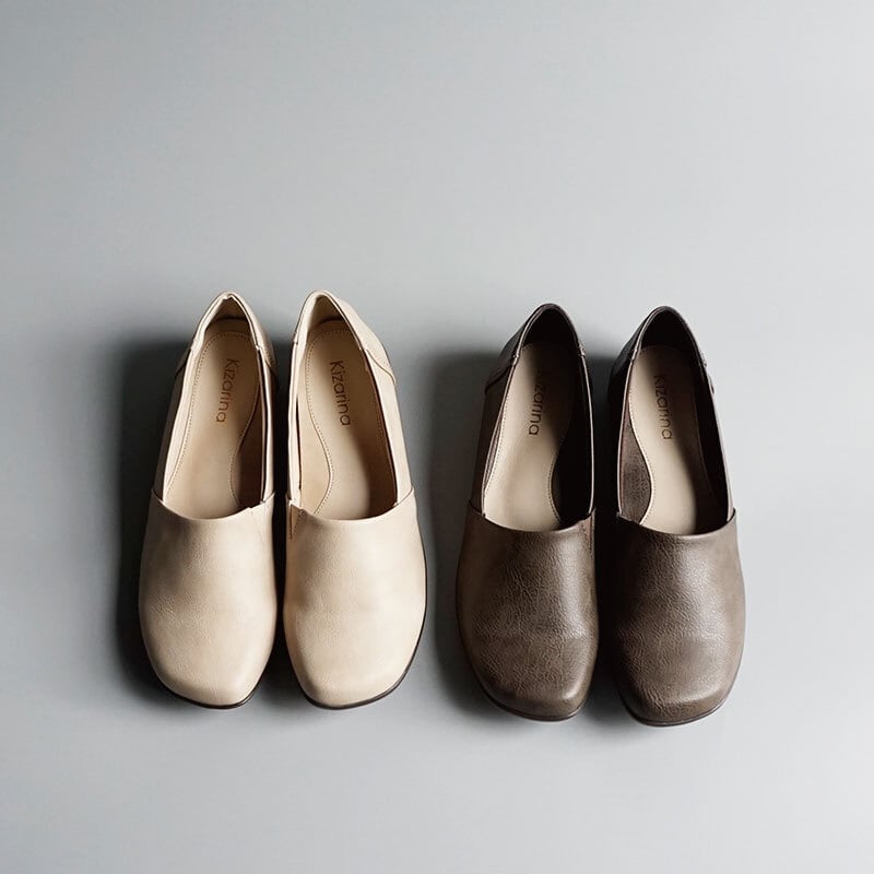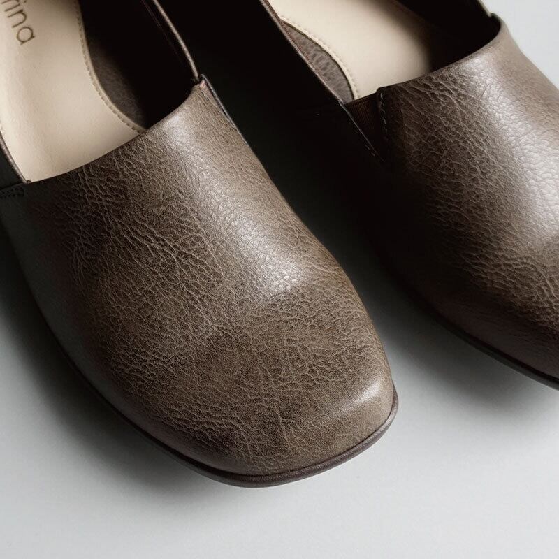 丸みのあるオブリークトゥがやさしい印象を与える、上品でシンプルなデザイン。