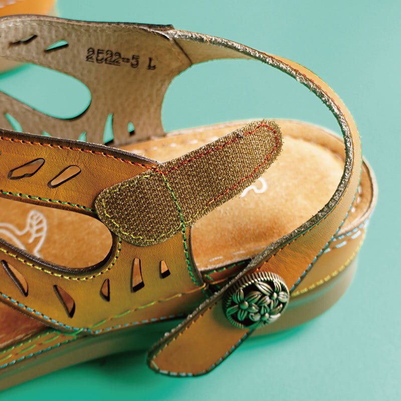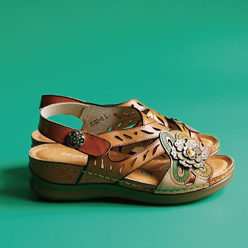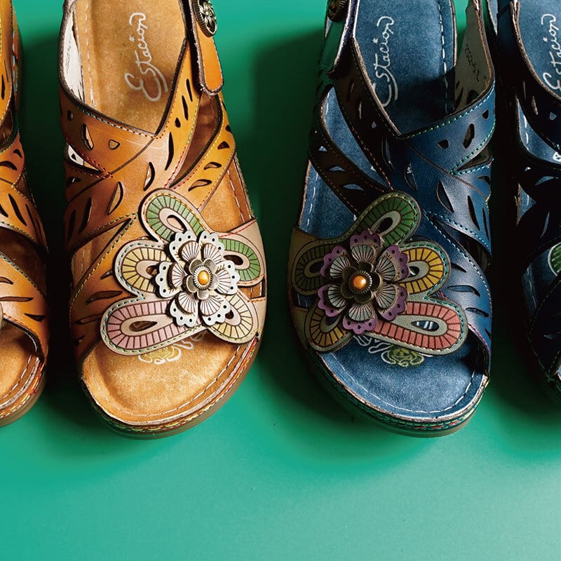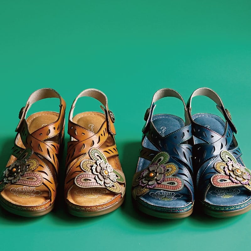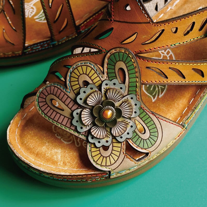エスニック調フラワーカット本革ストラップサンダル 2522-5