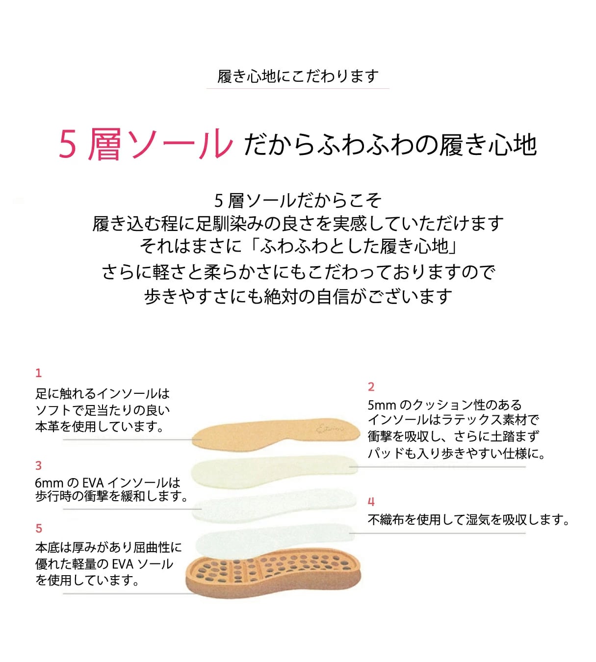 エスタシオンの5層ソールは履きこむ程、足馴じみが良い靴となっていくのが特徴です。